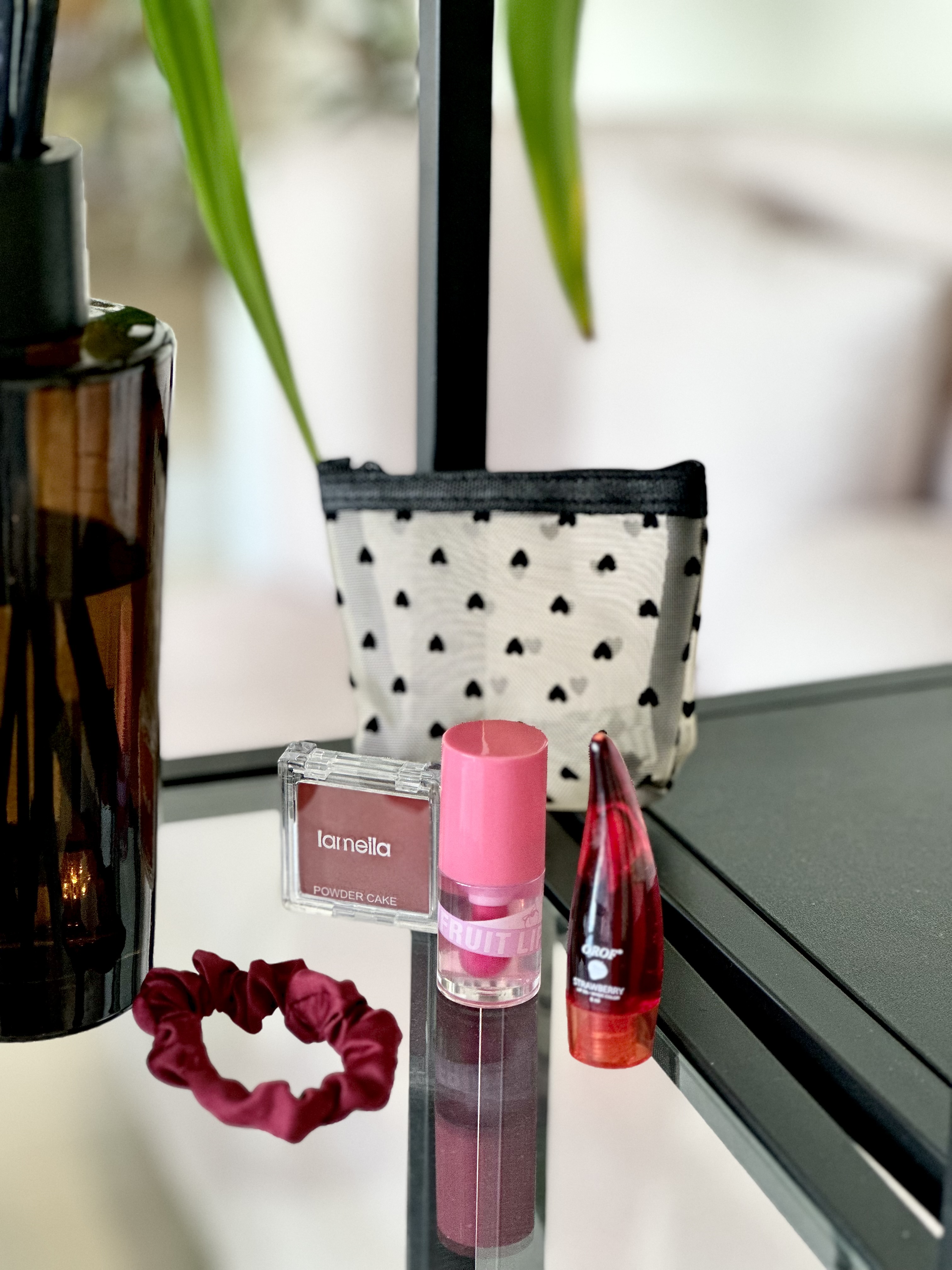 شنطة تحتوي على"جلوس ،بلشر ،ربطة شعر