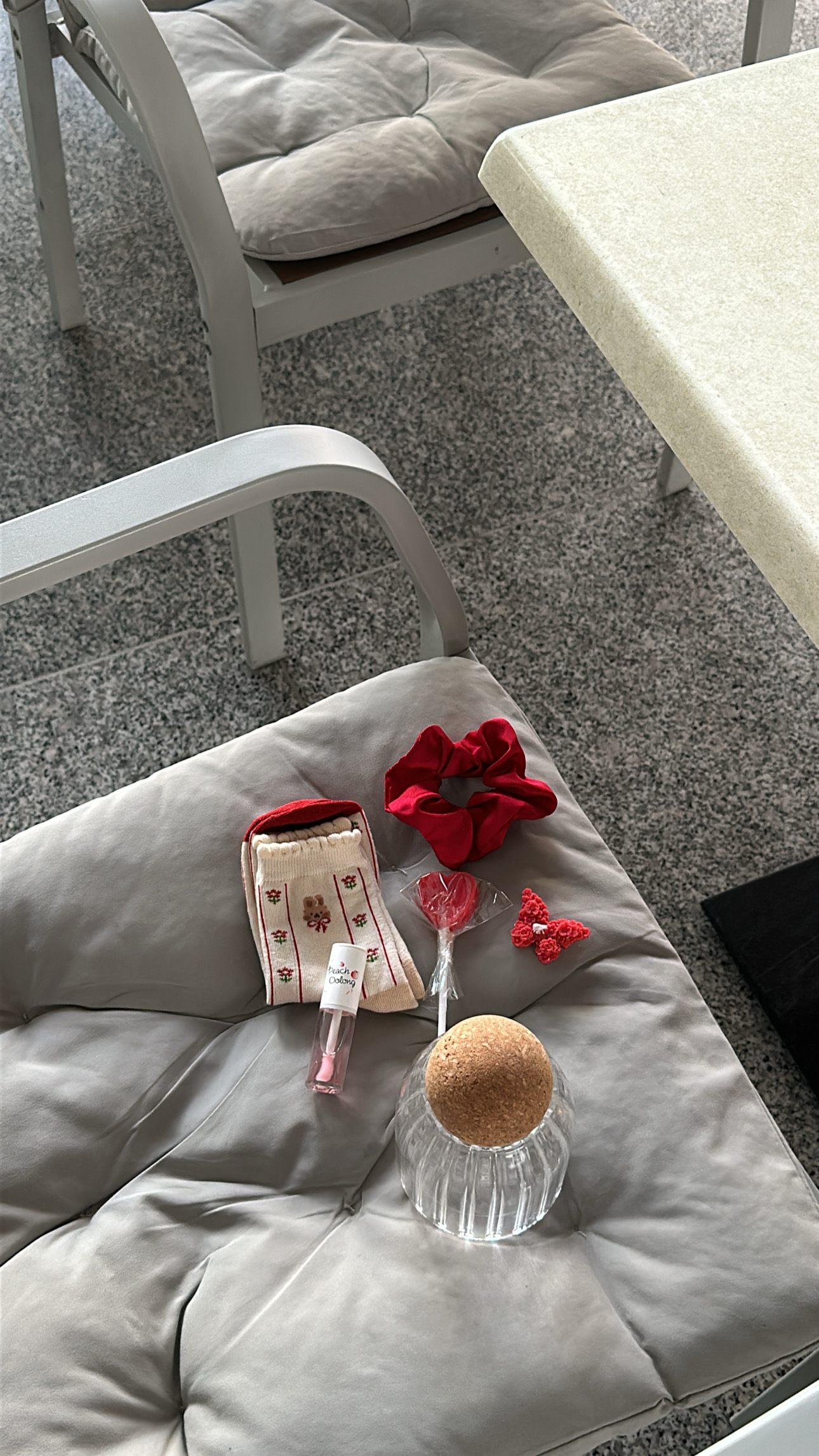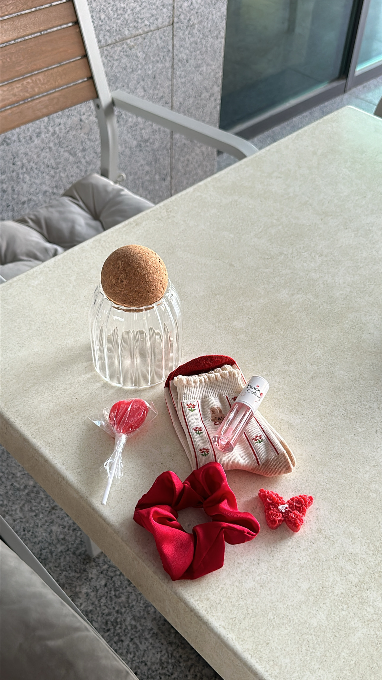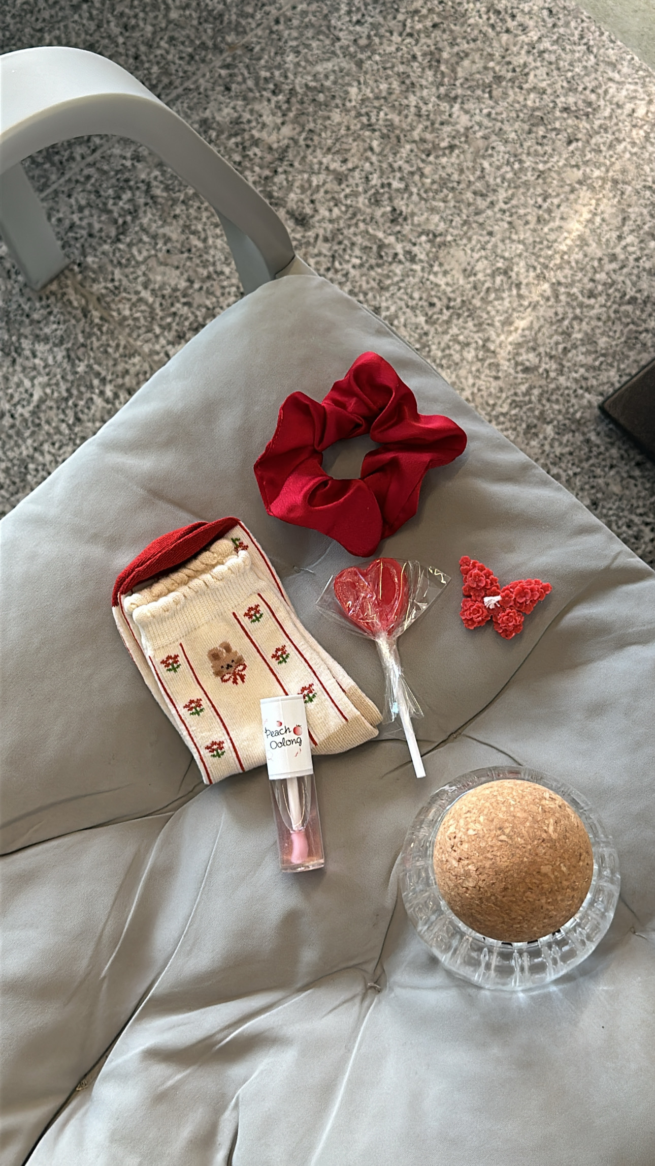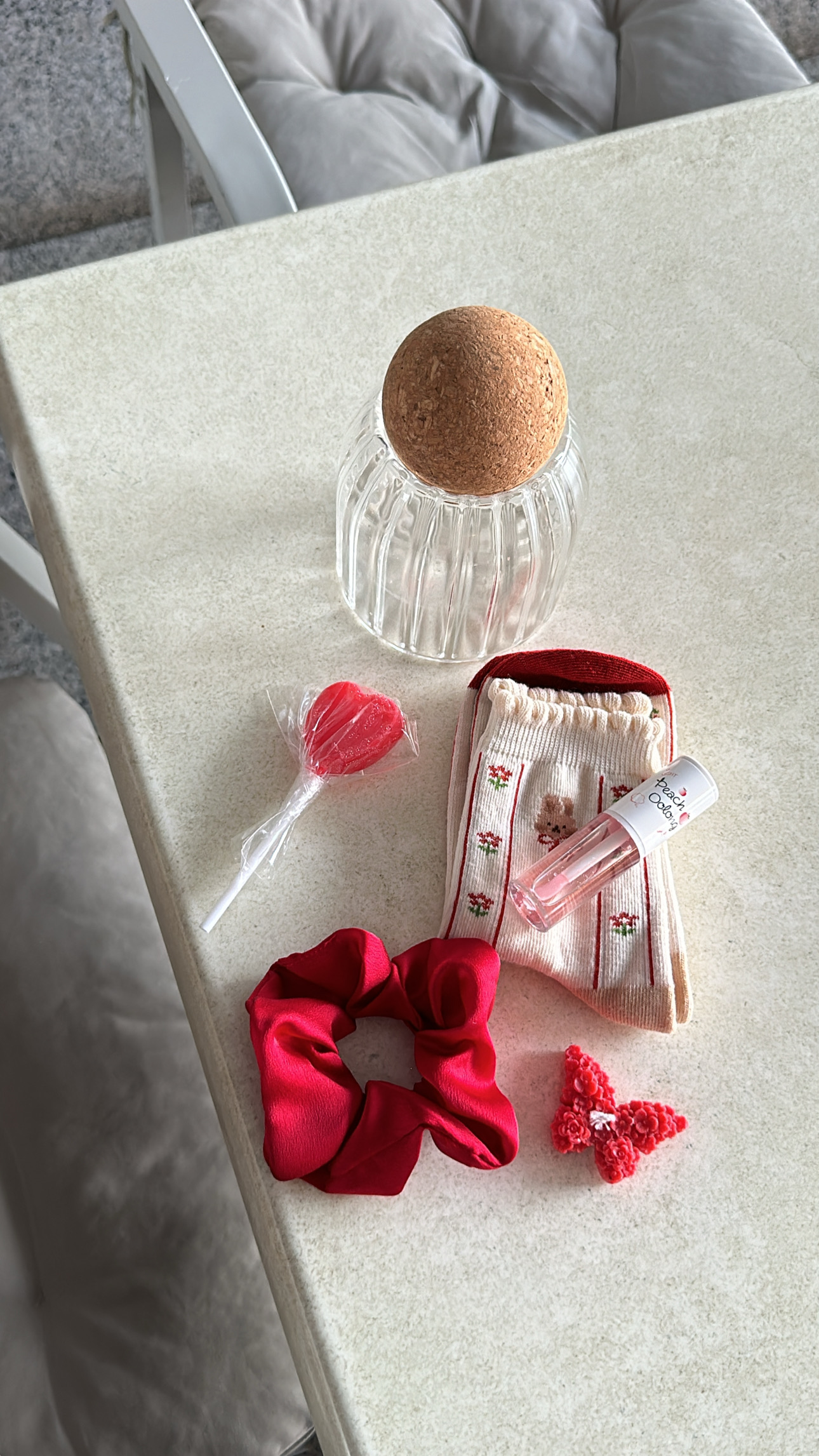 هدية راقيه"جلوس،علبة زجاجية ،ربطة شعر،جوارب،شمعه ،مصاصه